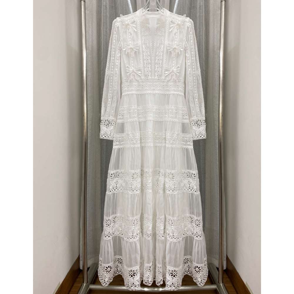 Chiffon lace dress with hand-made bow